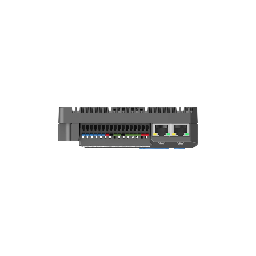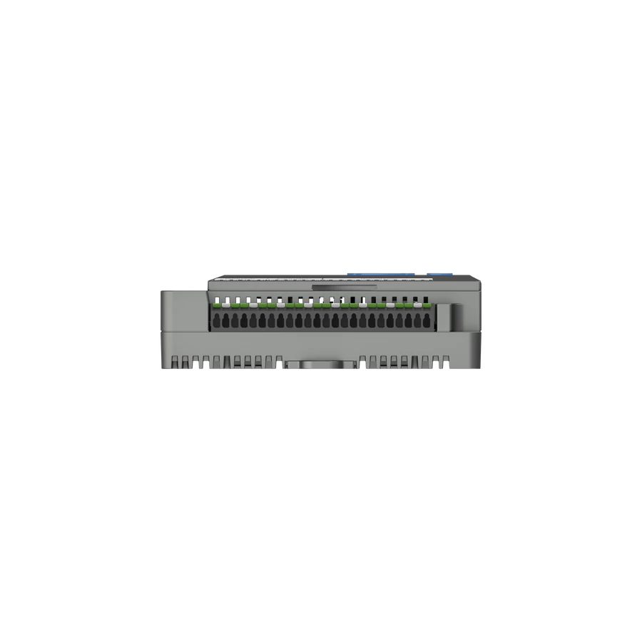 Integrált I/O modulok: 8 univerzális bemenet (0-10V, 4-20mA, PT1000, NTC), 4 digitális bemenet, 3 relé kimenet és 4 analóg kimenet a közvetlen beavatkozáshoz.