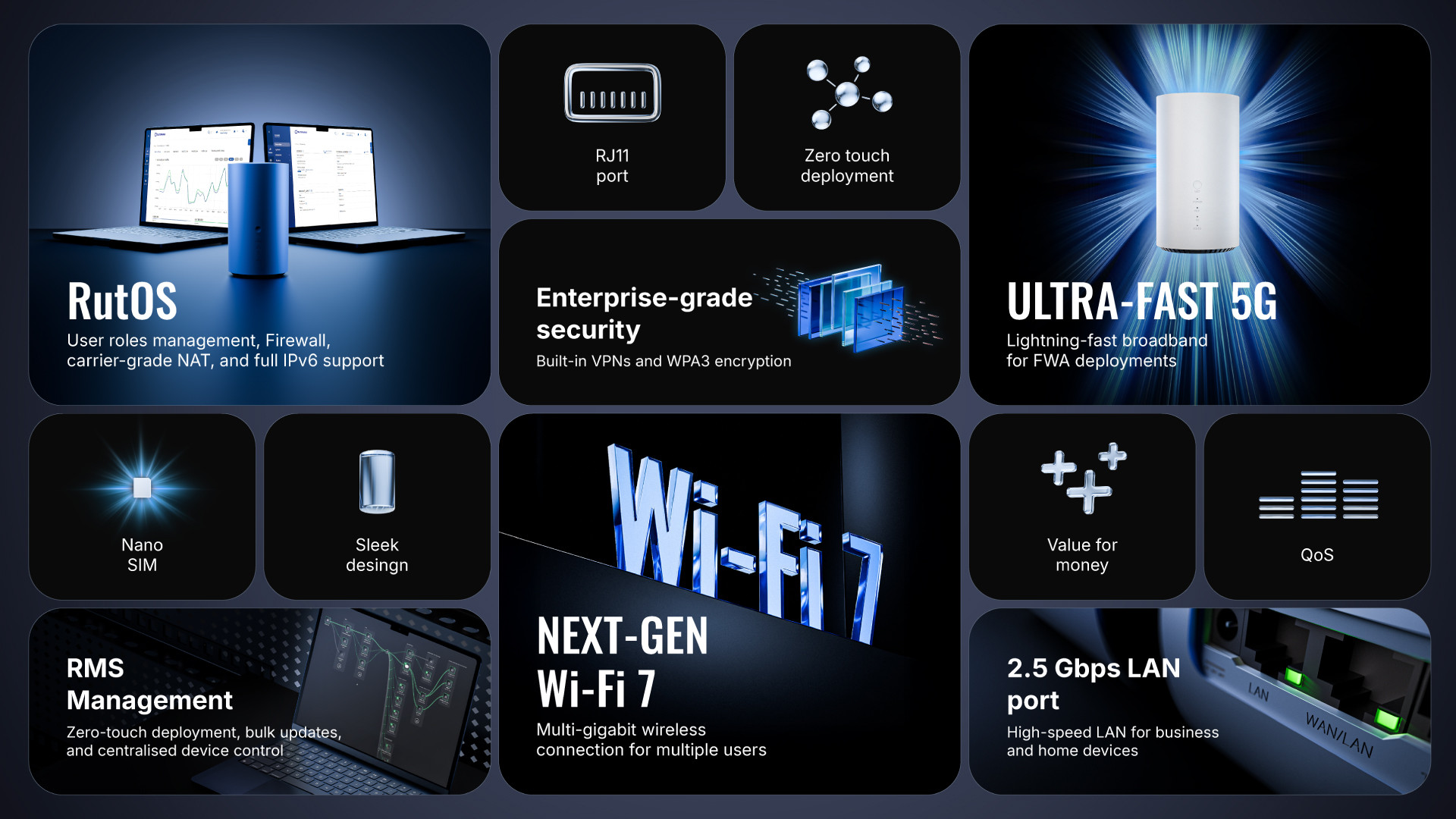 RutOS operációs rendszer: Az eszköz a már jól ismert, rendkívül biztonságos és stabil RutOS-t futtatja.