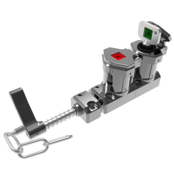 Az M-HD-C-11 karos dupla kulcsos retesz azon az elven működik, hogy amikor az első kulcs „csapdázott”, akkor a kar zárt állapotban van és rögzítődik a pozíciója. Ilyenkor nincsen kulcs a második pozícióban.