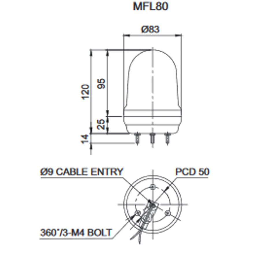 MFL80 LED Multifunkciós fényjelző, állandó/villogó/stroboszkóp/forgó fény piros DC12-24V, IP65