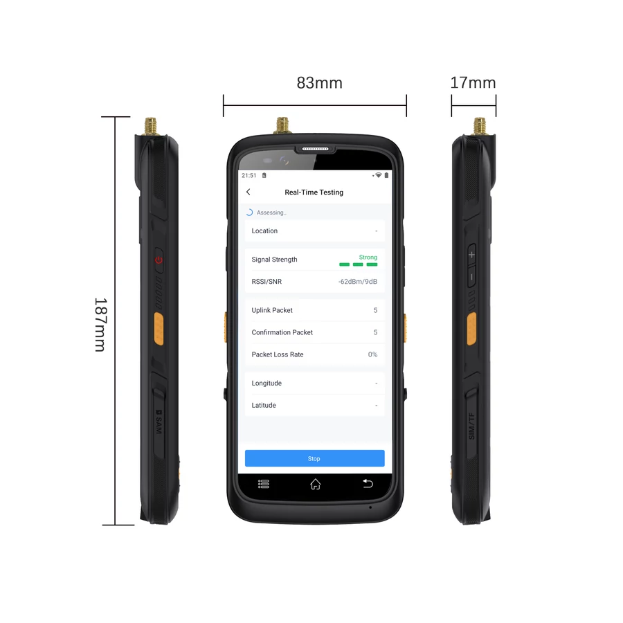 A Milesight FT101 Hálózat Tesztelő egy hordozható eszköz, amelyet a LoRaWAN hálózatok tesztelésére és vizsgálatára használnak. Valós idejű adatokat biztosít a jelerősségről, az RSSI értékekről, az SNR értékekről és a hálózati teljesítményről, segítve a felhasználókat annak biztosításában, hogy IoT-rendszereik optimalizáltak és megbízhatóak legyenek. A Milesight FT101 lehetővé teszi a különböző frekvenciák tesztelését különböző antennák cseréjével. 8 órás akkumulátor-üzemidővel rendelkezik, és támogatja a LoRa hálózati konfigurációt, hogy segítsen az ügyfeleknek megtalálni az optimális jelbeállításokat.