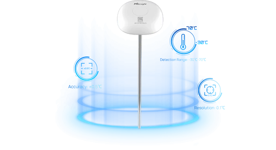 A Milesight TS101 kivételes pontosságal dolgozik a -40°C és a +125°C közötti hőmérsékletmérési tartományban és mérési pontossága ±0,5°C. Ez biztosítja a pontos és megbízható hőmérsékletellenőrzést, kiküszöbölve a romlás vagy az égés kockázatát.