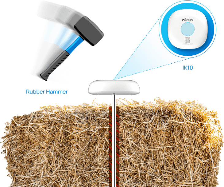 A bála hőmérséklet mérés talán a leggyakoribb felhasználási terület. A kazlakba szúrt TS101 szenzorok folyamatosan küldik az adatokat a Milesight IoT Cloud platformra. Ha bármelyik szenzor értéke átlép egy előre beállított kritikus küszöböt, a rendszer azonnali riasztást küld a felelősök telefonjára vagy e-mail címére, lehetővé téve a gyors beavatkozást, jóval az öngyulladás megelőzése érdekében.