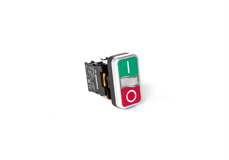 Plastim PB0-AW734B5 Kettős Nyomógomb - Piros+Zöld 24V LED 1 NO+1 NC 22 mm
