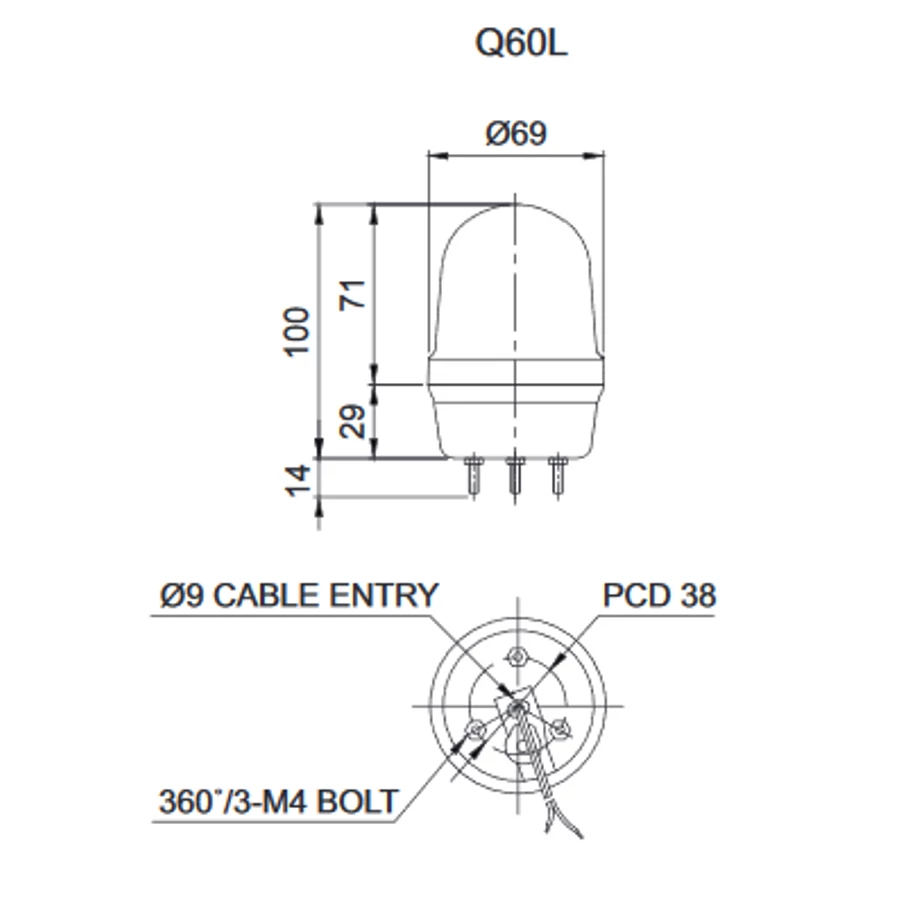 Q60L LED Fényjelző, állandó/villogó narancssárga DC12-24V, IP65