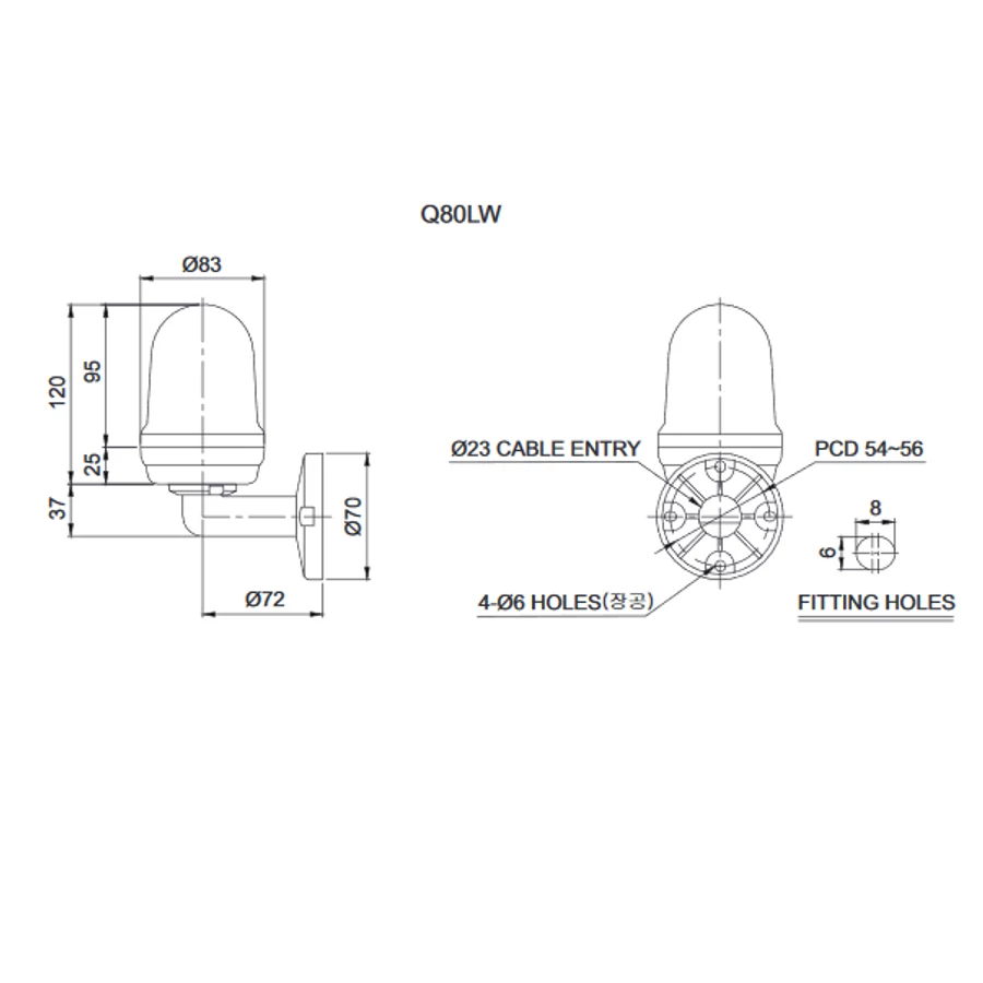 Q80L LED Fényjelző, állandó/villogó narancssárga DC12-24V, IP65 Falra szerelhető