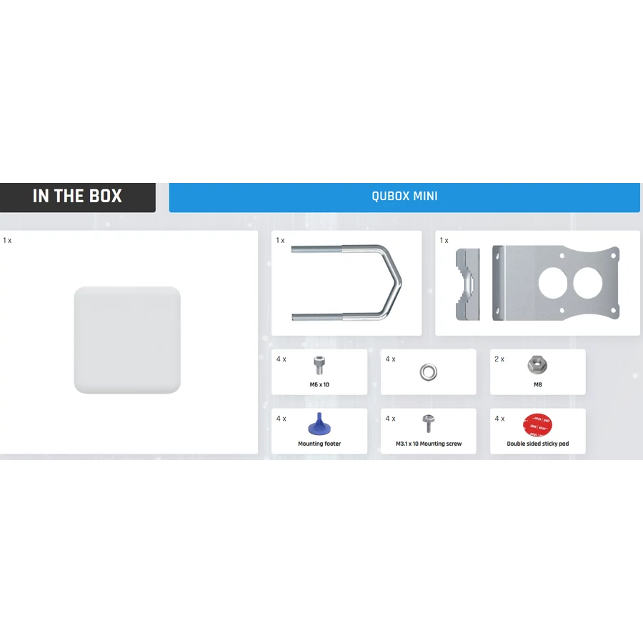 A QuBox Mini egy könnyű tokozat, amely kis és feltűnésmentes telepítések létrehozására lett tervezve. Beltéri és kültéri telepítésekhez is alkalmas (IP67). Rögzítőrendszerrel és kábelátvezetővel van felszerelve. A QuBox Mini UV sugárzásnak ellenálló ABS műanyagból készül. A tokozat fedelének belső oldalán antennák rögzítésére szolgáló párnák találhatók, a rekesz többi része az elektronikus nyomtatott áramköri lap számára van fenntartva.