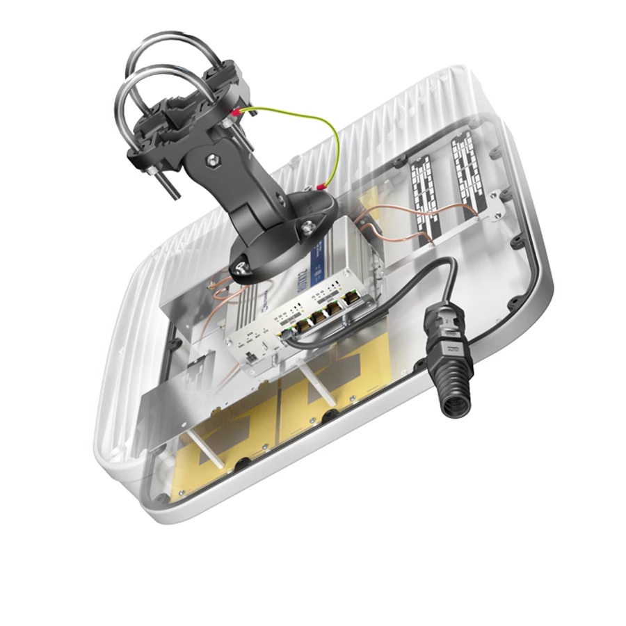 Minden egyben! IP67 Kültéri Integrált, MIMO 4x4 többsávos LTE irányított antenna + Wi-Fi omni antennák + GPS antenna + Bluetooth antenna + okozat telepítési hellyel Teltonika RUTX12 vagy RUTX14 routerkhez.