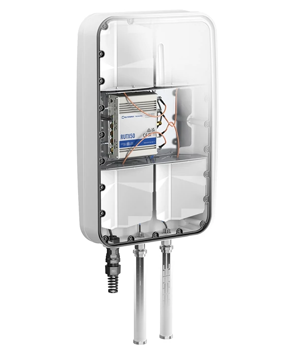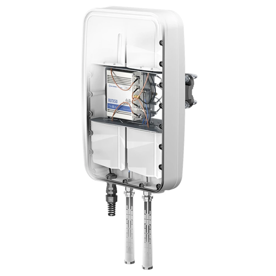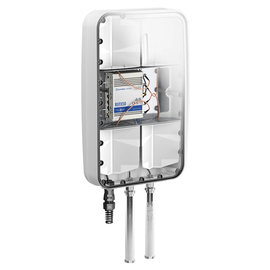 Minden egyben! IP67 Kültéri Integrált, MIMO 4x4 többsávos LTE és 5G Omni antenna + Wi-Fi omni antennák + GPS antenna + tokozat telepítési hellyel Teltonika RUTX50 routerkhez.