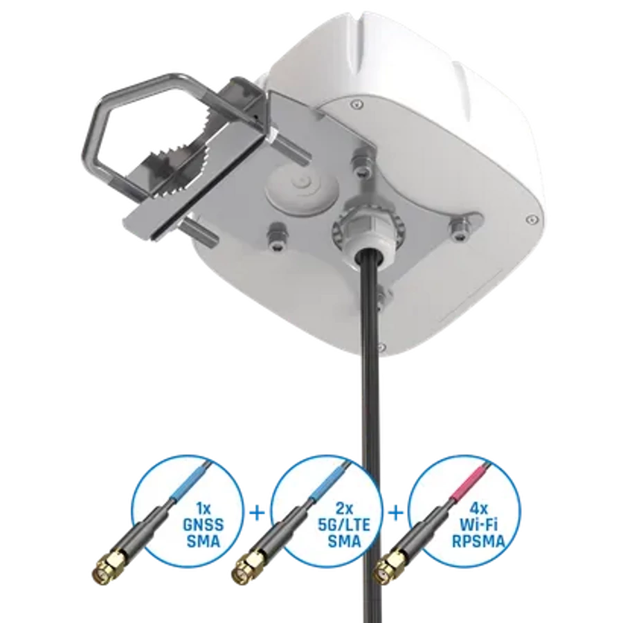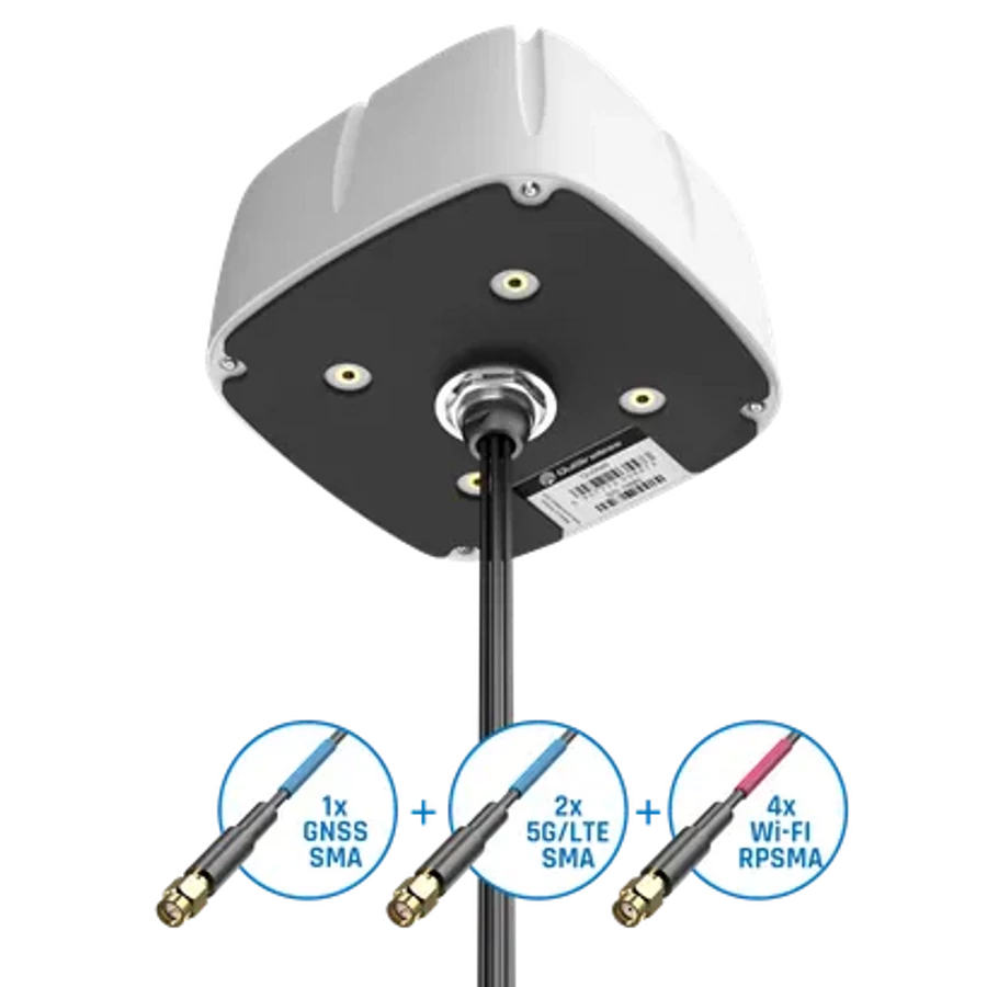 A QuShell 5G/LTE 2x2 MIMO, 4x4 MIMO WiFi 6e egy nagy teljesítményű mobil antenna, amely sokféle frekvencián és alkalmazásban biztosít hatékony kapcsolatot 5G/4G/LTE hálózatokhoz. Opcionálisan GPS/GNSS képességgel, valamint akár 4x4 MIMO/Diversity konfigurációkkal is rendelkezik 2,4/5,0/7,2 GHz-en Wi-Fi-hez. Az opcionális, nagy teljesítményű GPS/GNSS antenna integrált 18 dB erősítésű LNA-val rendelkezik. 2 db 5G/LTE, 1 db GPS/GNSS és 4 db Wi-Fi antennával érkezik. Széles frekvenciatartományt fed le 617 és 6000 MHz között az 5G/LTE sávokhoz, emellett a kétsávos Wi-Fi 6e antennák egyidejű 2,4 GHz-es és 5–7,2 GHz-es lefedést biztosítanak.