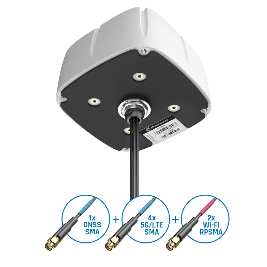 A QuShell 5G/LTE 4x4 MIMO, 2x2 MIMO WiFi 6e egy nagy teljesítményű mobilitási antenna, amely széles frekvenciatartományban és különböző 5G/4G/LTE alkalmazásokhoz biztosít megbízható kapcsolatot. Opcionálisan GPS/GNSS-t és akár 2x2 MIMO/Diversity konfigurációt kínál 2,4/5,0/7,2 GHz-en Wi-Fi-hez. Az opcionális, nagy teljesítményű GPS/GNSS antenna integrált 18 dB-es erősítésű LNA-val rendelkezik.