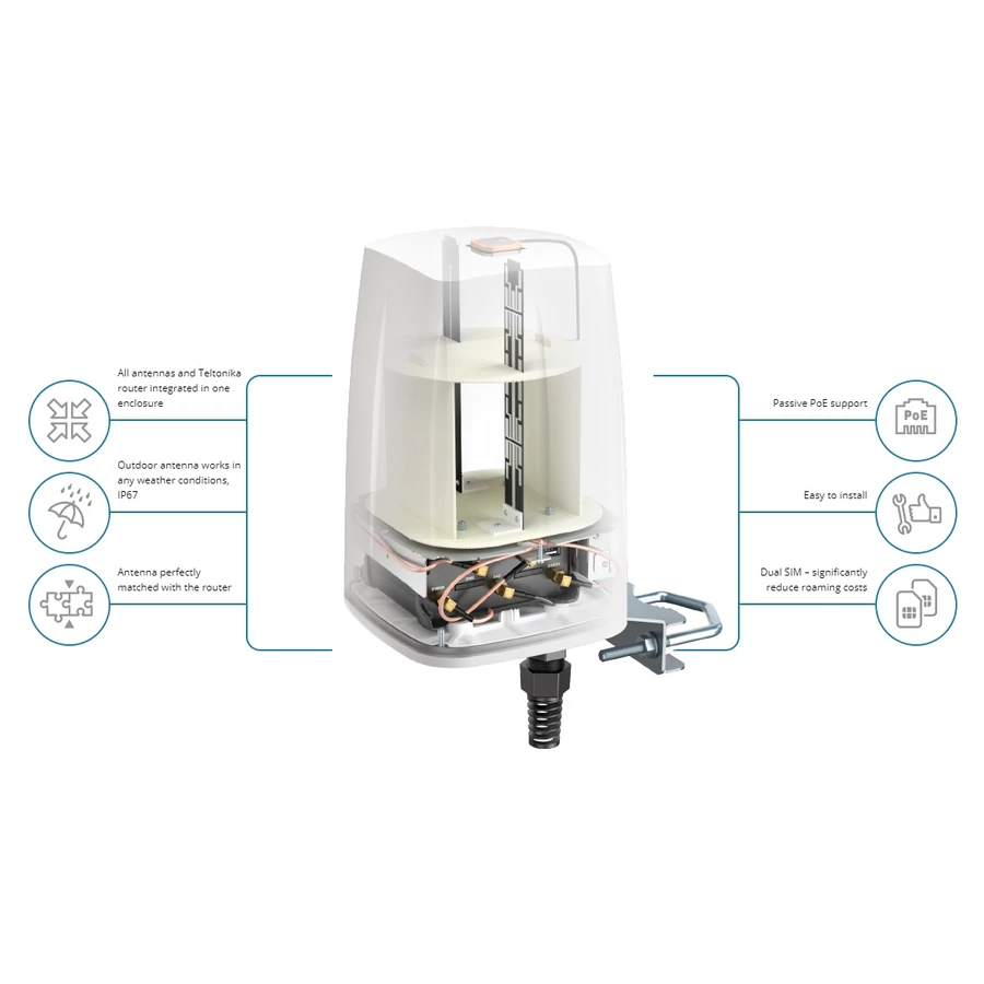 Minden egyben! IP67 Kültéri Integrált többsávos LTE omni antenna + WiFi omni antenna + Tokozat telepítési hellyel Teltonika RUT906/RUT956/RUT955 routerekhez