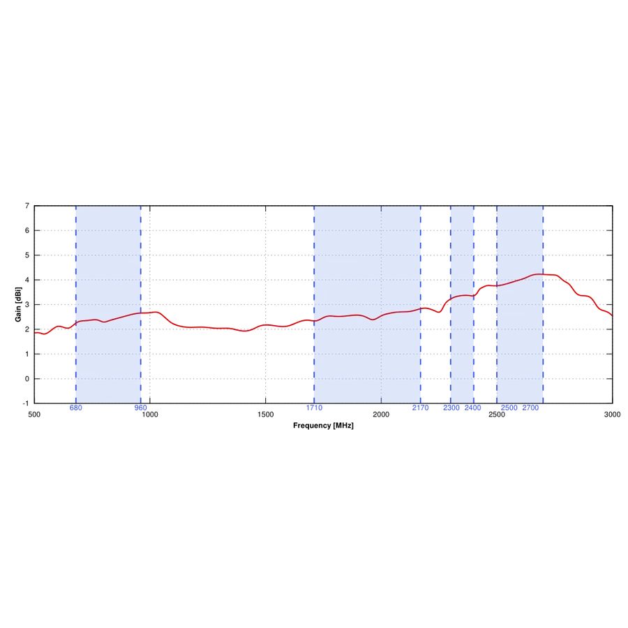 2 dBi (694 - 960 MHz & 1,7 - 2,2 GHz), 4 dBi (2,2 - 2,7 GHz) |