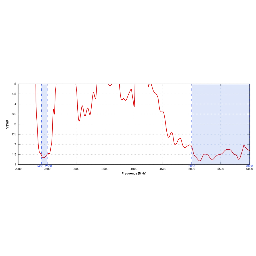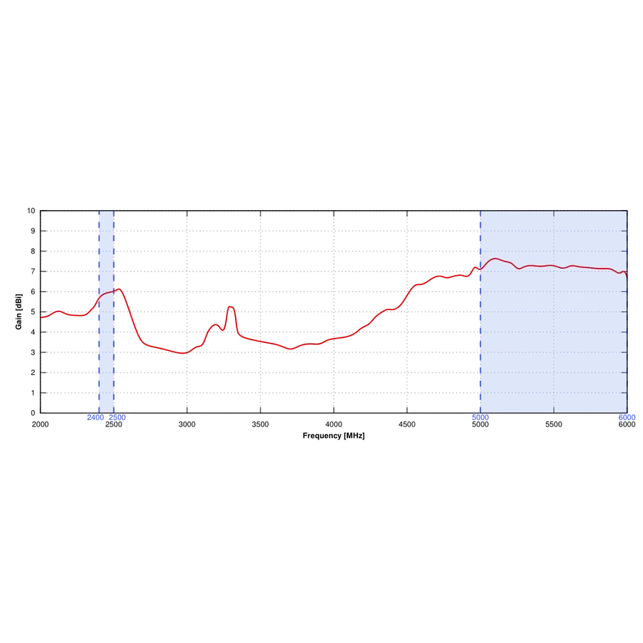 2,4 - 2,5 GHz:6 dBi, 4,7 - 6 GHz:7,5 dBi |