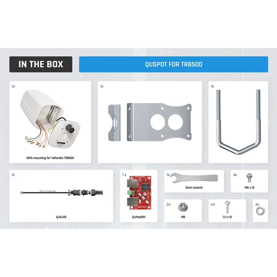 A QuSpot Omni A500S MIMO 4x4 LTE és 5G antenna (4x SMA csatlakozó) Teltonika TRB500 átjáróhoz. Az antenna széles frekvenciatartományt fed le, 617 MHz (Band71) és 4.3 GHz között. Az 5G mellett GPS antennát is tartalmaz, ami azt jelenti, hogy a QuSpot A500S által egy "minden az egyben" megoldást kap Teltonika TRB500 átjárókhoz. A ház belsejében található szerelési hely segítségével számos új kültéri (IP67) megoldás valósítható meg. Javasoljuk akár mozgó alkalmazásokhoz is, például vonatokhoz, buszokhoz, jachtokhoz vagy lakókocsikhoz, de vidéki területeken a jelminőség javítására is.