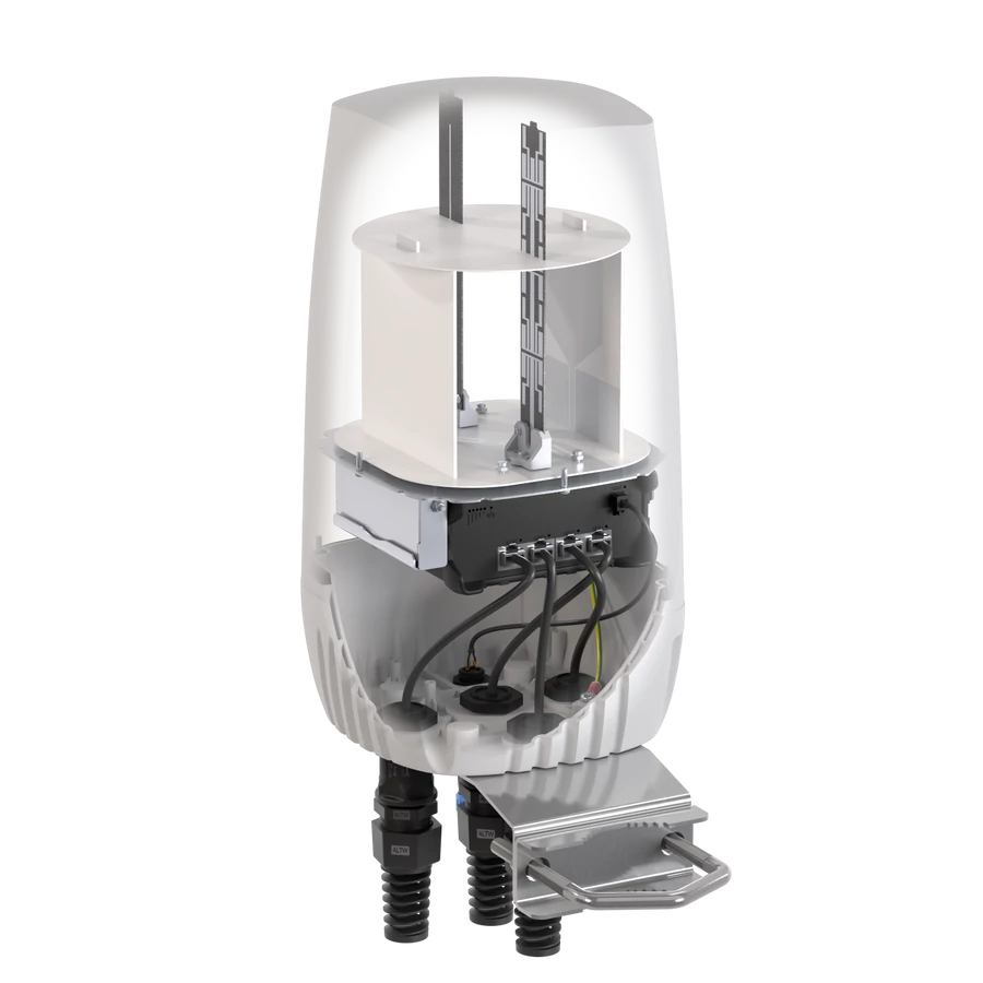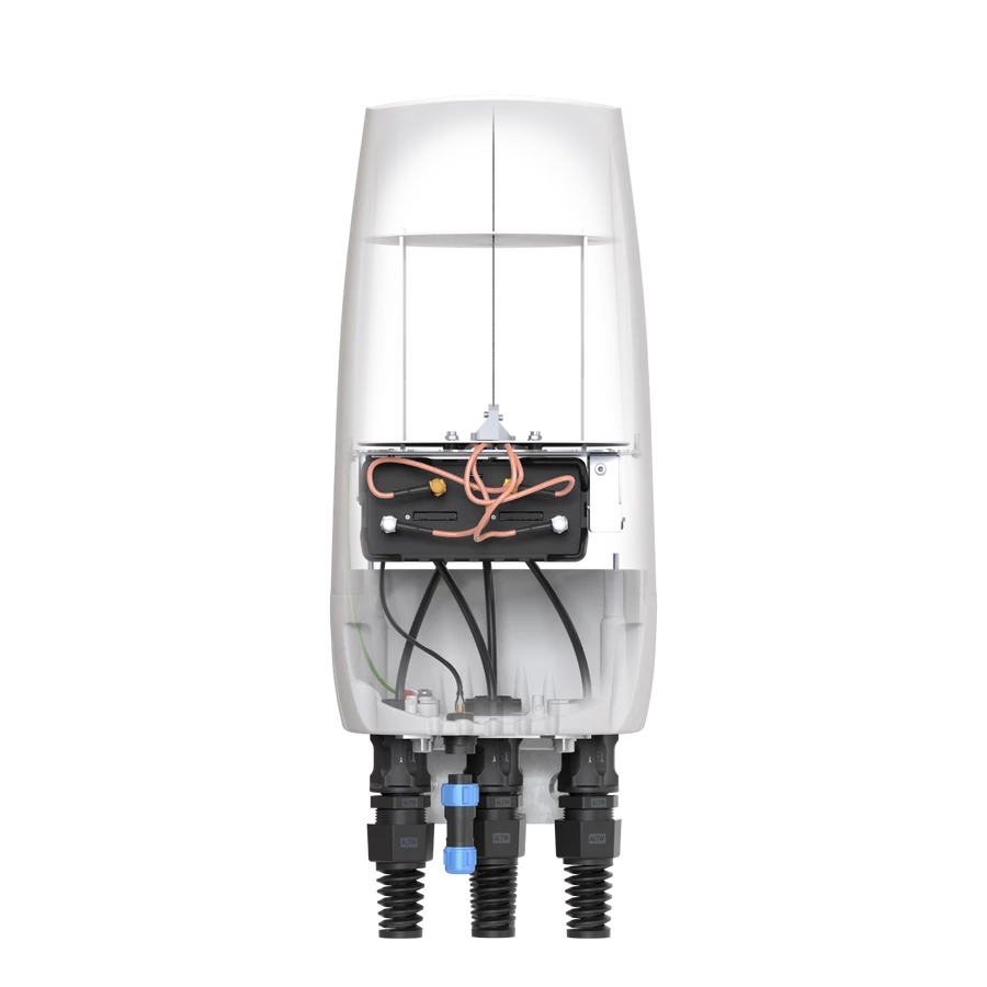 A QuSpot nem csupán egy antenna; egy komplett hálózati és tápellátási központ, amelyet kifejezetten a Teltonika RUT951 PoE+ routerhez terveztek. A belső rögzítő rendszer biztosítja a router stabil elhelyezését, míg az oszlopra vagy falra szerelhető konzol rugalmas telepítési lehetőségeket kínál. A valódi ereje a beépített PoE+ funkciókban rejlik, amelyekkel könnyedén táplálhat és csatlakoztathat több PoE-képes eszközt, mint például biztonsági kamerákat, érzékelőket vagy szirénákat.