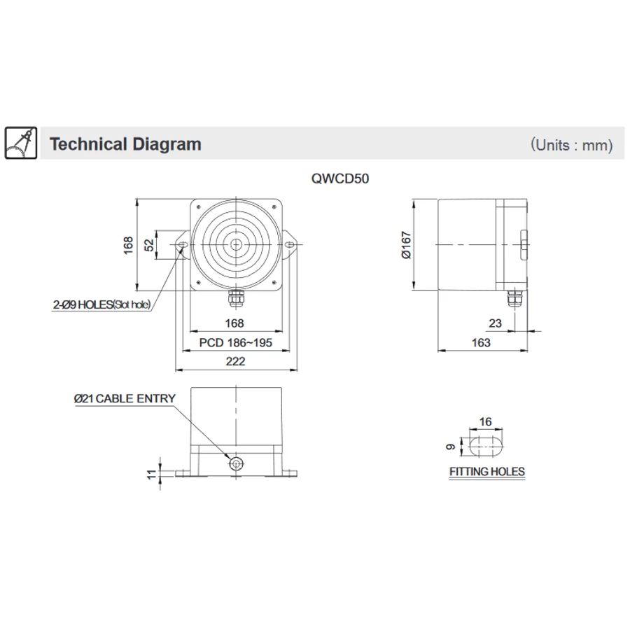QWCD50 LED Villanófény és Hangjelző IP66 SD+MP3