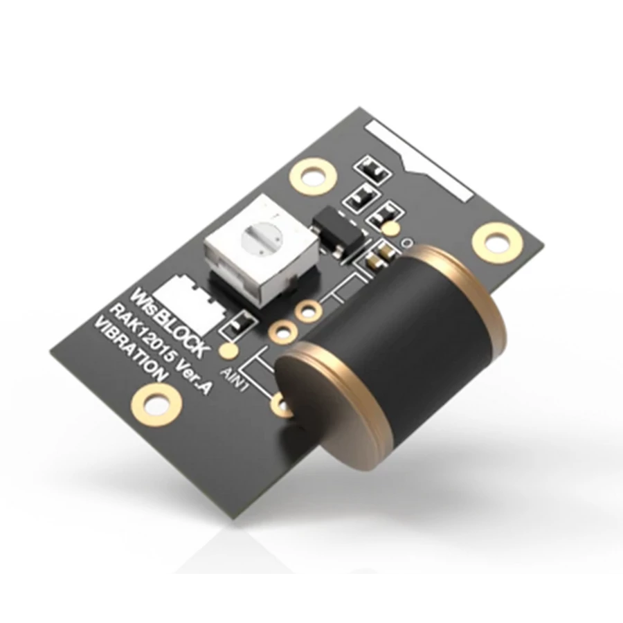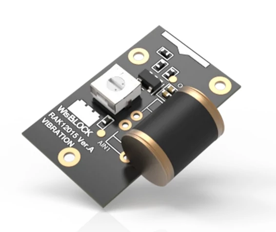 A WisBlock RAK12015 szenzor modul egy nagy pontosságú ANT801S rezgésérzékelőt tartalmaz, amely iránykorlátozás nélkül képes érzékelni a mikrolökéseket vagy a vibrációt.