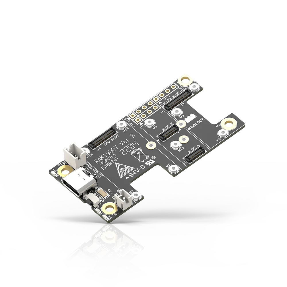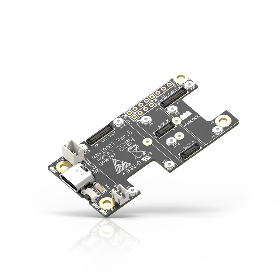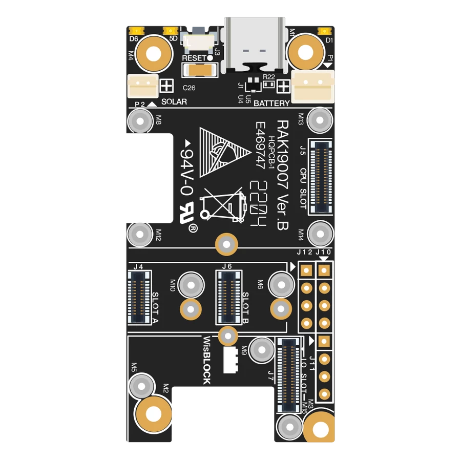 A RAK19007 WisBlock Alap Modul a szabványos WisBlock alaplapok második generációja Az alaplap a hordozója a WisBlock Core MCU modulnak, WisBlock érzékelőknek és más WisBlock típusú moduloknak.