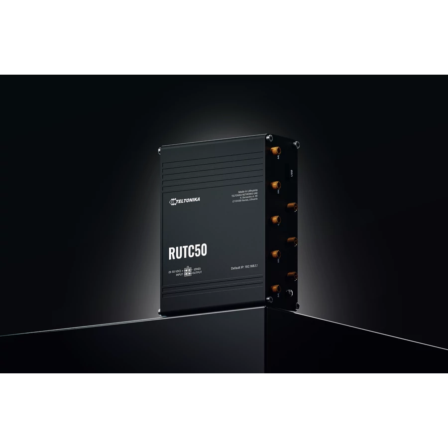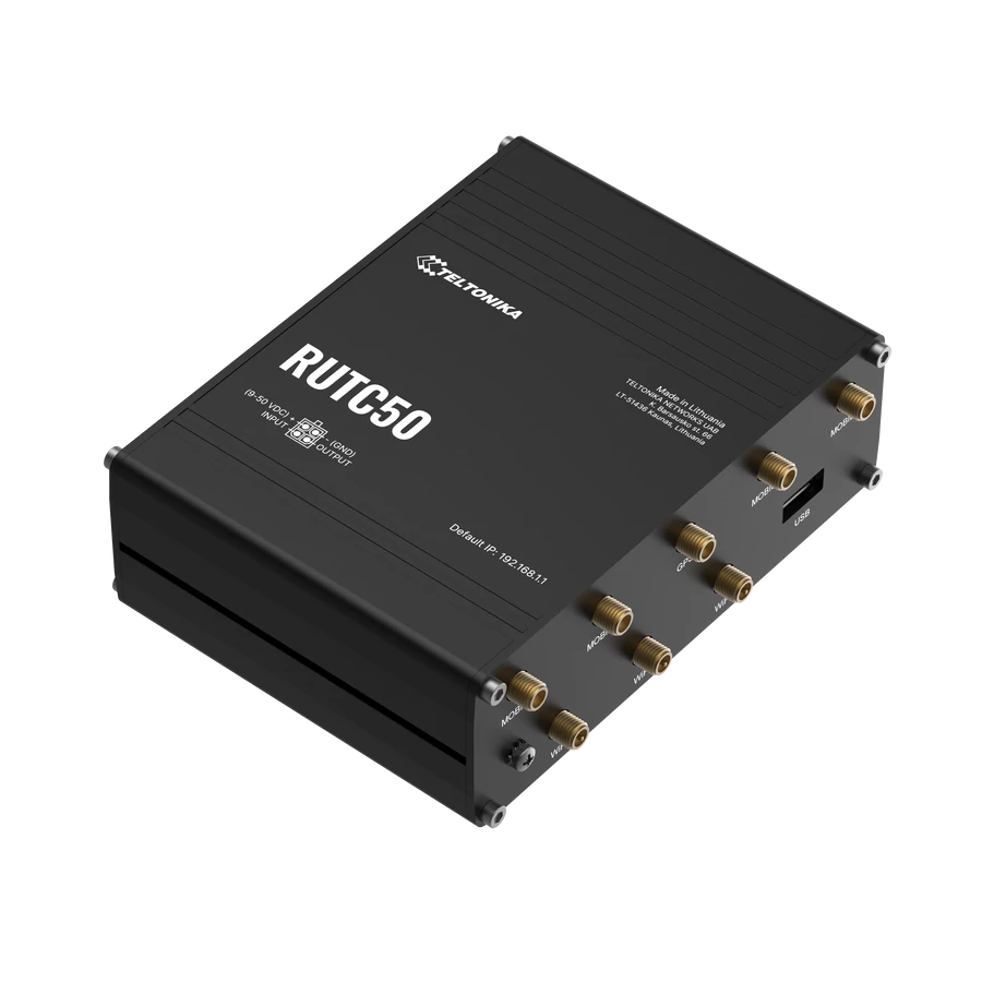 2 SIM cards, auto-switch cases:weak signal, data limit, SMS limit, roaming, no network, network denied, data connection fail, SIM idle protection (Feature availability varies by order code (RUTC50 0**)) |