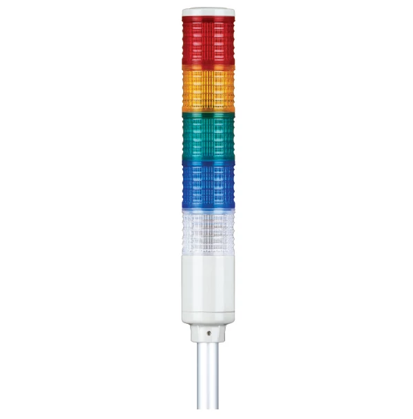 ST45L-BZ-5-24-RAGBW komplett tartóoszlopos jelzőtorony piros + n.sárga + zöld + kék + fehér + hangjelző Ø45mm