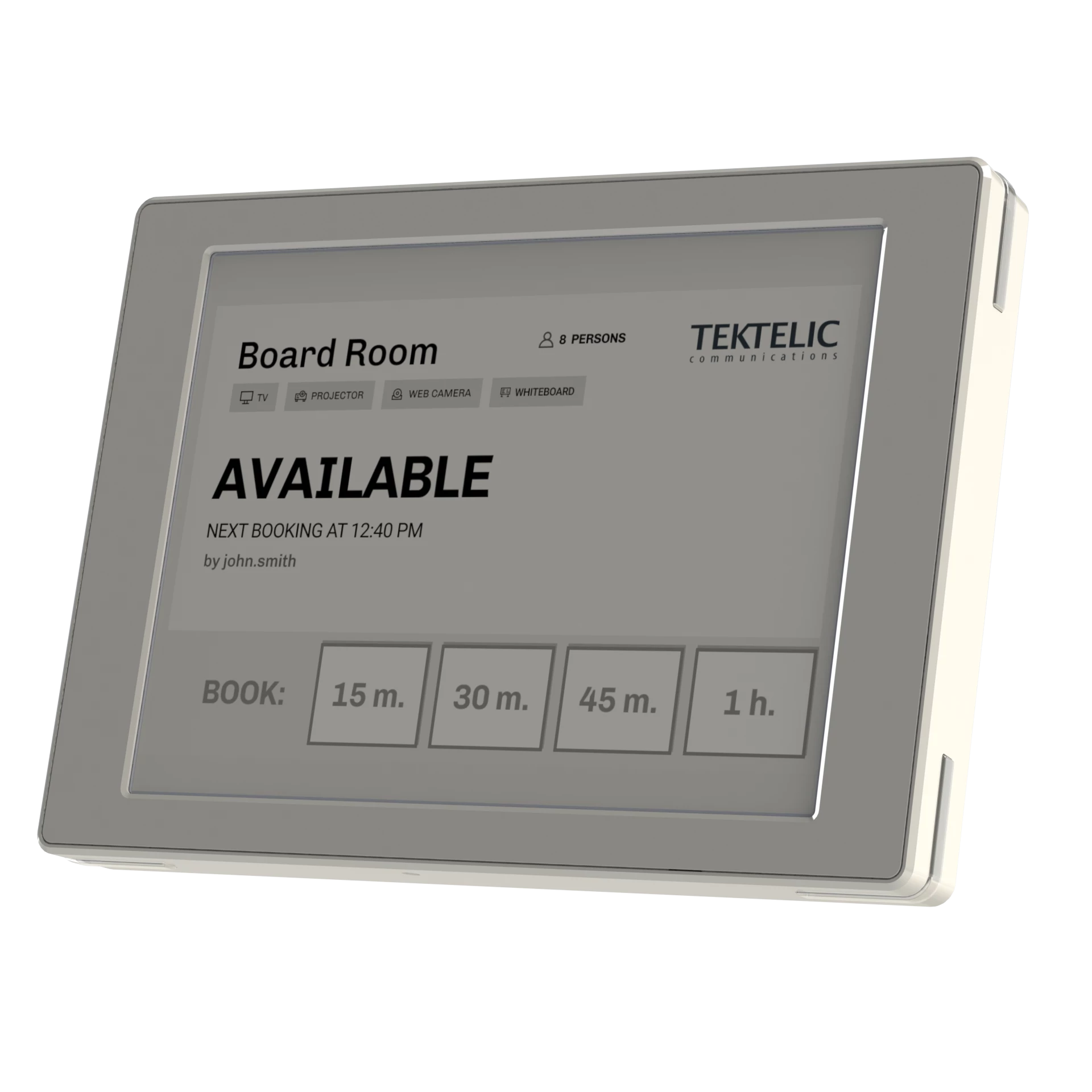 A TEKTELIC TEMPO Tablet a maga nemében az első olyantárgyalótermi információs kijelző, amely E-ink technológiát és LoRaWAN® hálózatot használ, hogy egyszerű és hatékony megoldást kínáljon a helyiségek foglaltságának nyomon követésére és kezelésére, megbeszélések koordinálására és lefoglalására, valamint statisztikai adatok elemzésére. A TEKTELIC intelligens helyiségérzékelőivel integrálva a platform valós idejű foglaltsági állapotot jelenít meg, lehetővé téve a felhasználók számára, hogy időt és erőfeszítést takarítsanak meg a helyiség rendelkezésre állásának teljes láthatósága mellett.