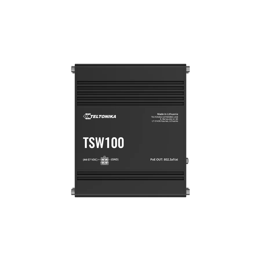 A Teltonika Networks TSW100 egy ipari nem menedzselhető switch.