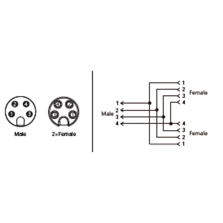 M8 apa / 2 x M8 anya Y elosztó 4 Pólusú A-CODE (Y-SAM4-2SAF4/PAR )